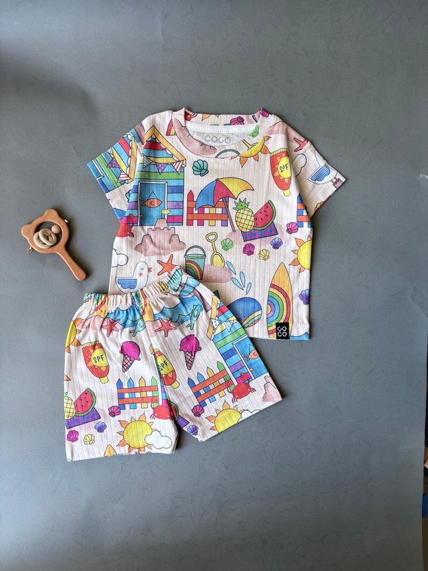 سایز۶-۸(قد لباس ۵۲ پهنا ۳۸ قد شلوارک ۴۰)