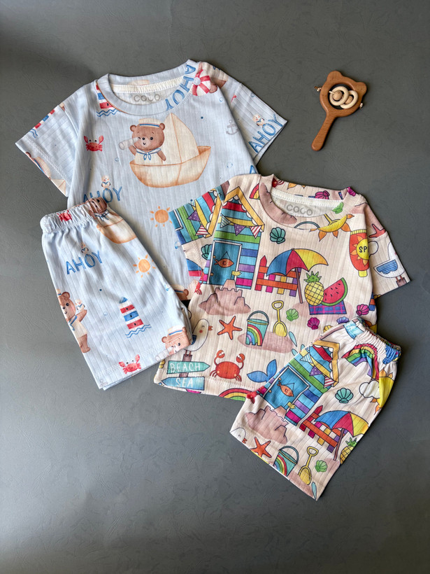 سایز۳-۴(قد لباس ۴۰ پهنا ۳۵ قد شلوارک ۳۰)